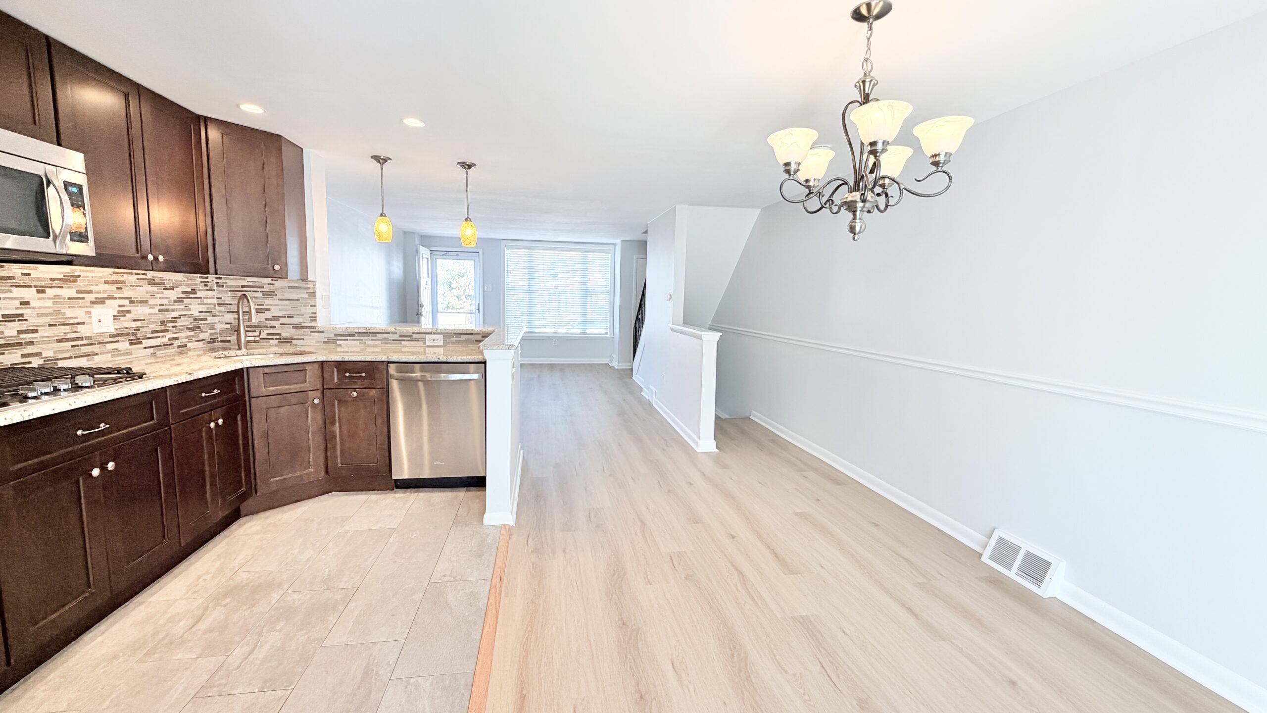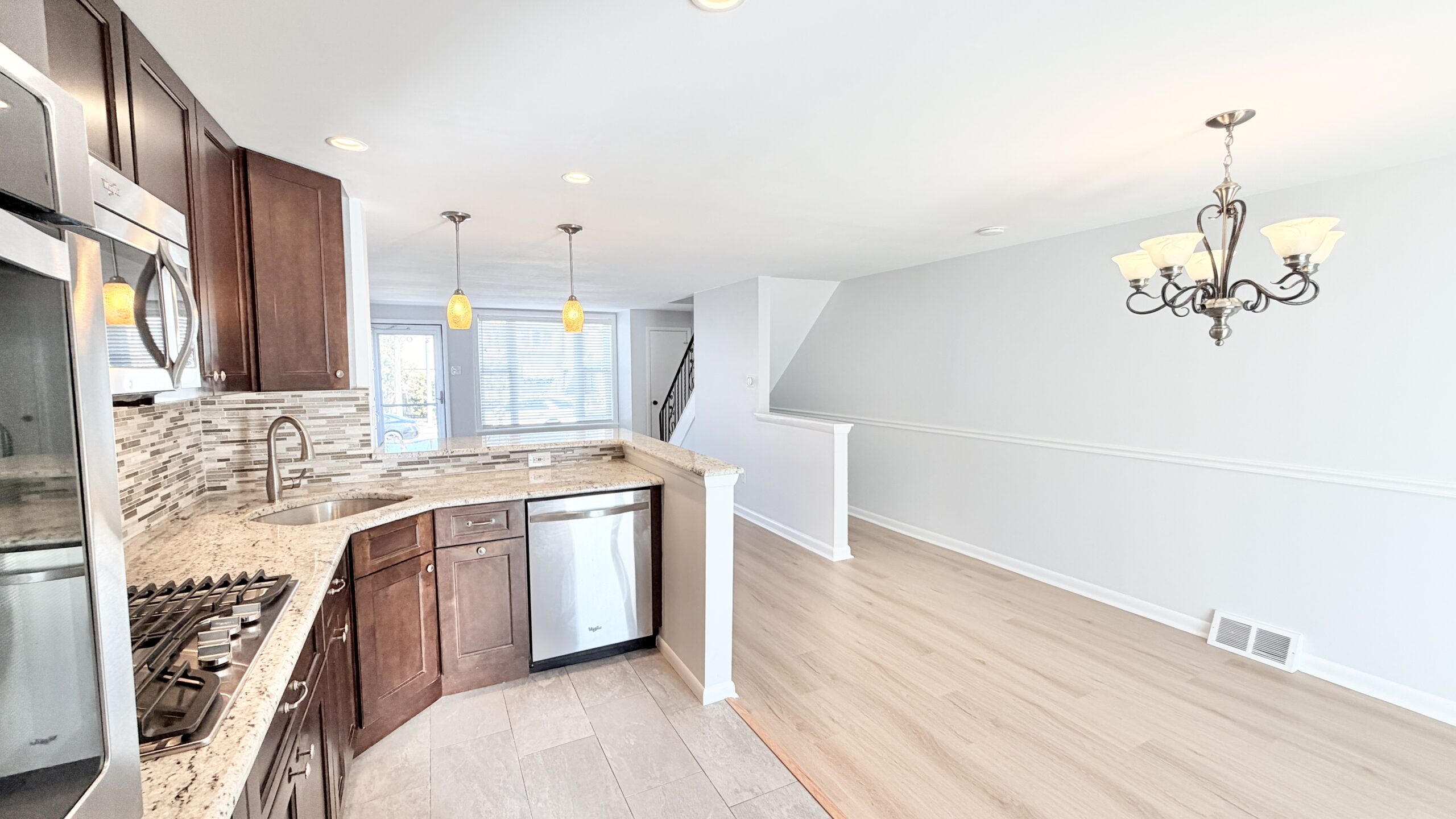 Renovated 3-bedroom home with deck, garage, and off-street parking 1818 Packer Ave Beautifully updated 3-bedroom rowhome in the desirable Packer Park section of South Philadelphia featuring modern finishes, open living space, and rare off-street parking. The main level offers a bright open layout with spacious living and dining areas, recessed lighting, and attractive flooring throughout. The kitchen features espresso cabinetry, stainless steel appliances, double wall ovens, a tile backsplash, and a breakfast bar overlooking the living space. Upstairs are three bedrooms with good natural light and closet space, along with an updated bathroom featuring a contemporary vanity and skylight. The lower level includes a tiled den or flex space ideal for a family room, office, or workout area, along with a modern half bath, full-size washer and dryer with utility sink, and interior access to the rear garage. Outdoor spaces include a front patio and a large rear deck perfect for relaxing or entertaining. The property also includes a rear one-car garage plus two additional exterior parking spaces suitable for smaller vehicles, a rare convenience in the neighborhood. Conveniently located near parks, shopping, restaurants, public transportation, and major highways, and just minutes from the South Philadelphia Sports Complex including Lincoln Financial Field, Citizens Bank Park, and the Wells Fargo Center. Owner pays for cold water. All other utilities are the responsibility of the tenant. |